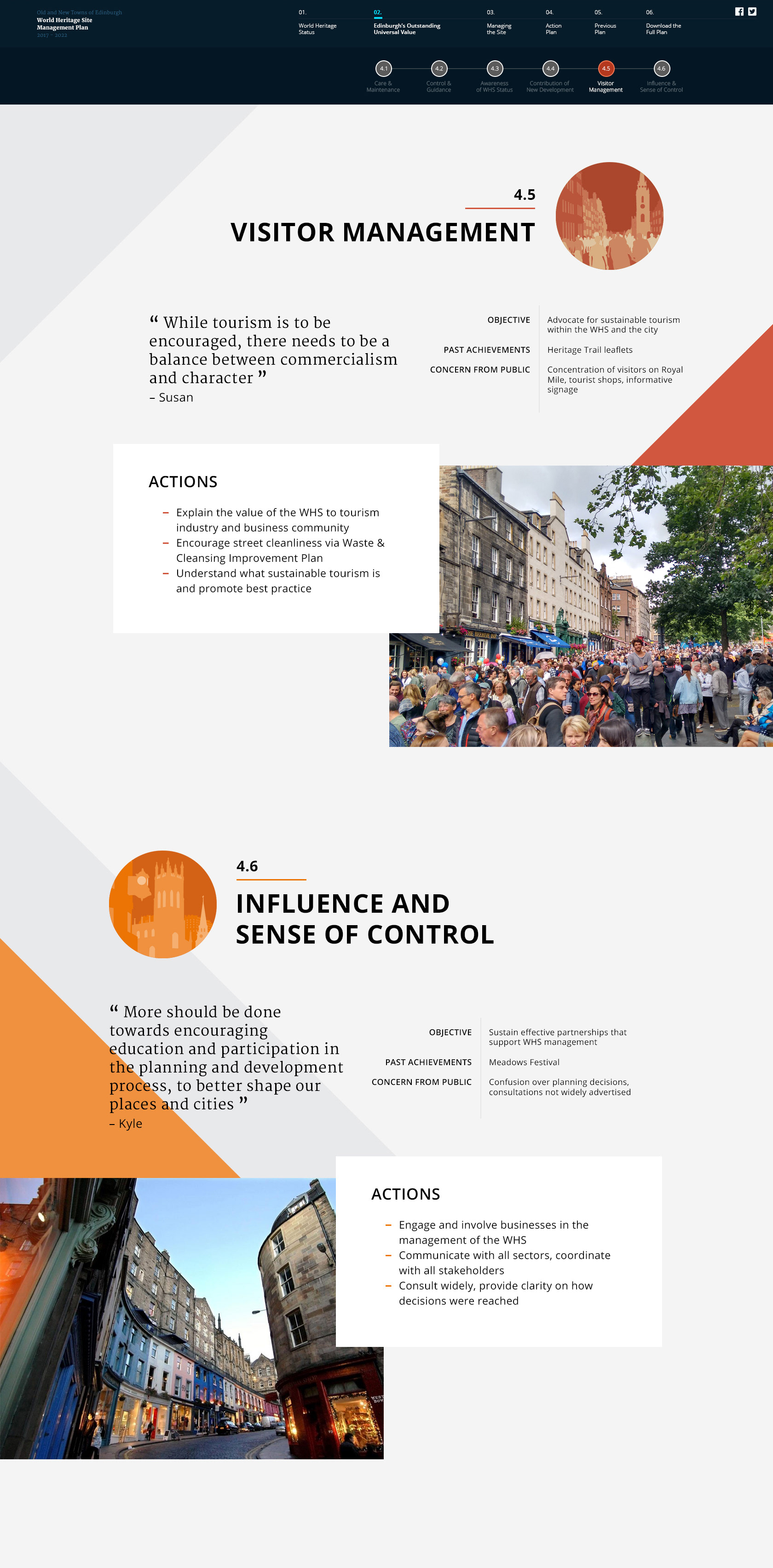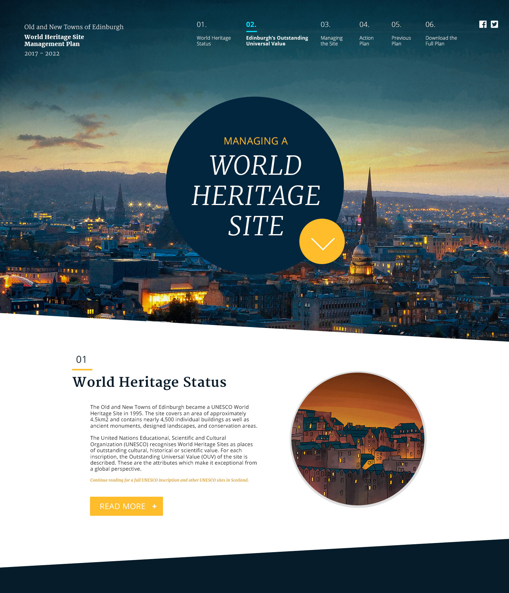 The Edinburgh World Heritage Site required an online version of their print-based Management Plan designed and built. The print-based Management Plan is a 100 page document that had to be transformed into a website that would be easy to navigate, responsive and engaging without losing the reader’s interest. The project required wireframe mockups, custom illustrations, designs and responsive implementation. http://ewh.org.uk/plan/